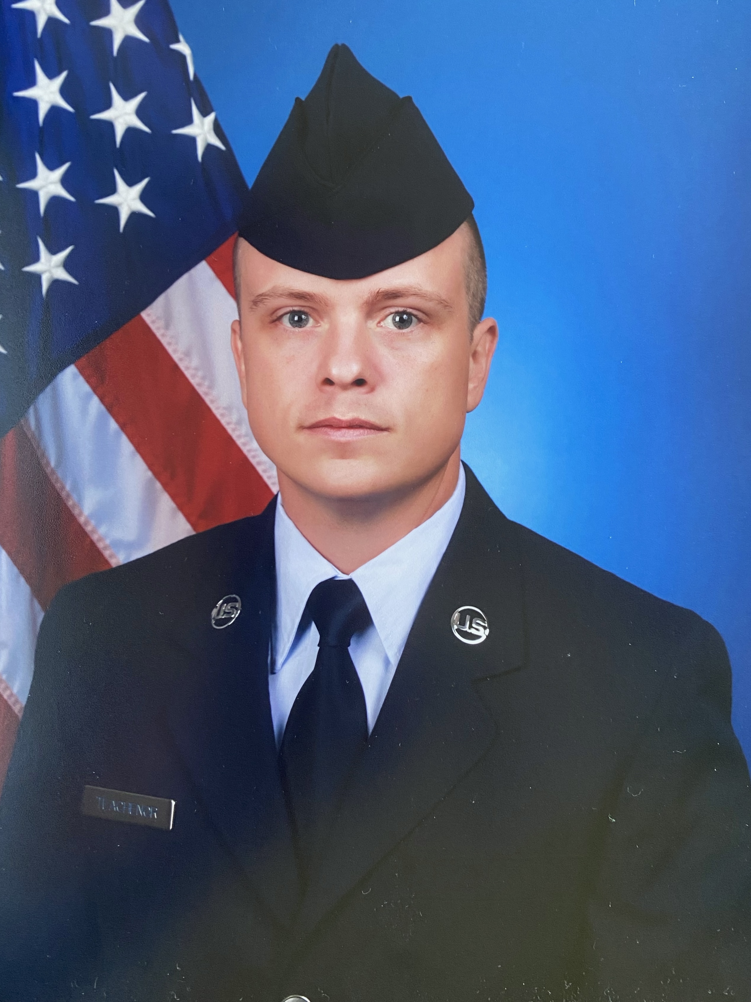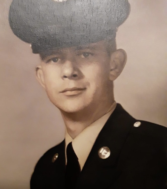 Below is a photo of my dad, Jim Teachenor, in his Army service dress uniform and me in my Air Force service dress uniform. Both were our first official photos taken during Basic Military Training (BMT).
